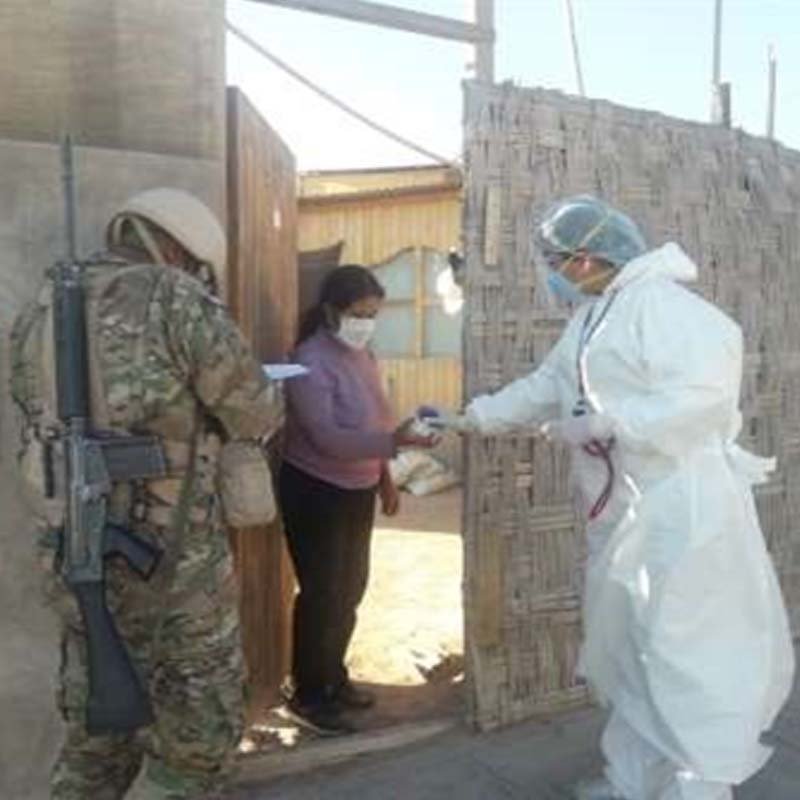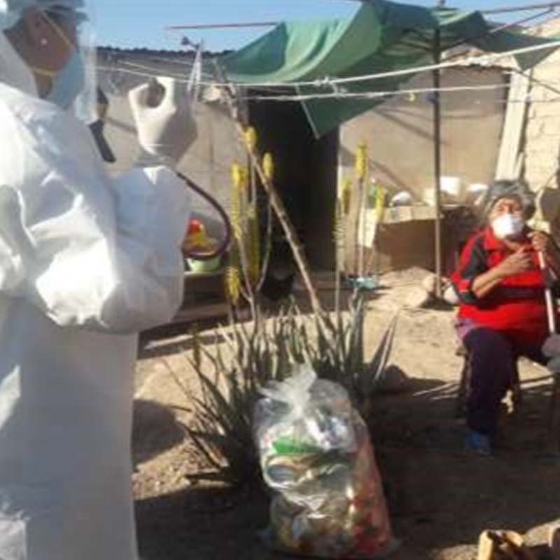 COVID 19 Gestión de 15 kit de medicinas, alimentos y prueba rápida, que fueron entregados casa por casa a los adultos mayores y personas vulnerables de la junta vecinal Juan Pablo II, mediante la actividad operación TAYTA, en compañía de médicos, policía y personal de las fuerzas armadas.
