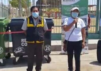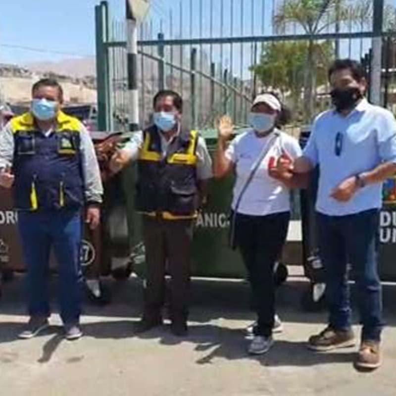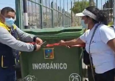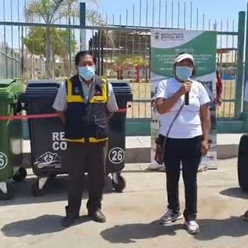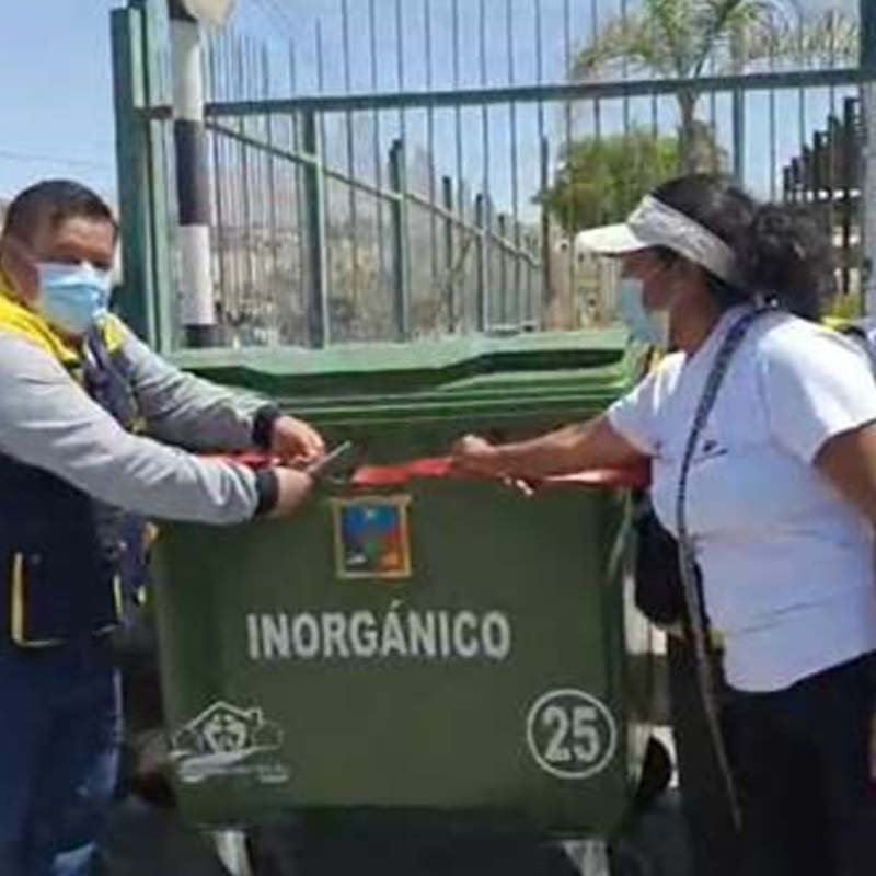 Gestión de contenedores móviles 6und de 3 colores, para clasificar orgánico, inorgánico y residuos sólidos, ubicado en lugares estratégicos de la junta vecinal Juan Pablo II, 21/11/2020.